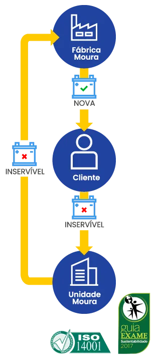 O programa visa garantir a sustentabilidade através da gestão ambiental em todos os processos e esferas da Moura. A cada uma bateria nova vendida, uma antiga deve ser recolhida.